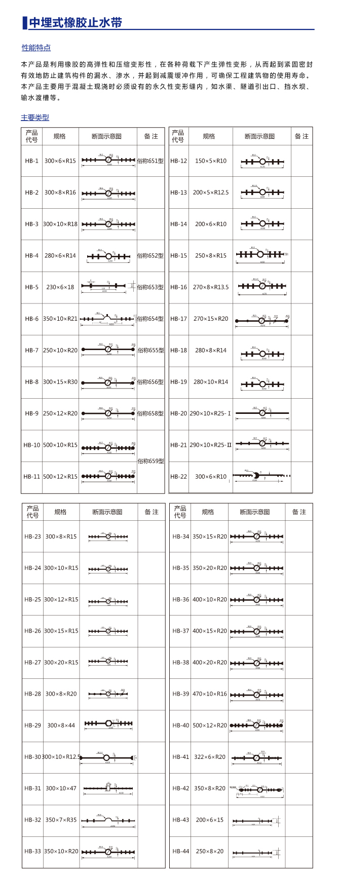 CB型止水帶是指中間有孔的中埋式止水帶, CB型橡膠止水帶、。主要適用于各種混凝土構(gòu)筑物的伸縮縫、沉降縫及防震縫等,具有與混凝土錨固緊密、止水密封和適應(yīng)變形縫伸縮變形的能力等。