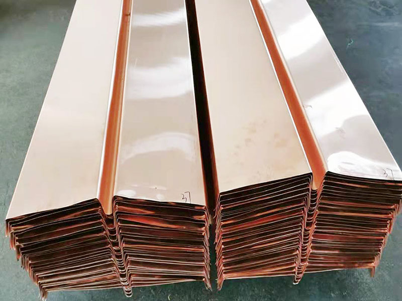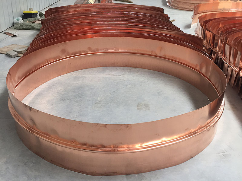 由銅陵有色提供T2紫銅,經(jīng)先進(jìn)的自動(dòng)數(shù)控液壓設(shè)備進(jìn)行冷軋成型,不改變紫銅母材的物理性能,成型后的產(chǎn)品檢驗(yàn)值遠(yuǎn)高于國(guó)標(biāo)值。